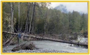 I ran my airboat up the glacier-fed Chilkat river to the cabin-based hunting area. While gliding up the smooth river, the surrounding forest displayed a mosaic of burgeoning fall colors; then, we navigated a small, brushy stream where the fully loaded airboat powered across dry channels.